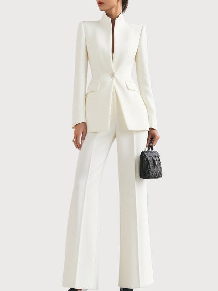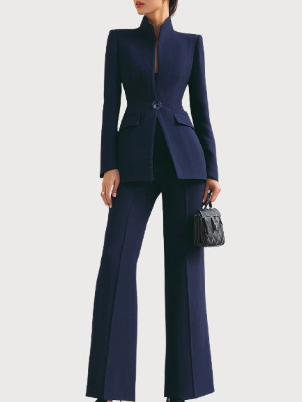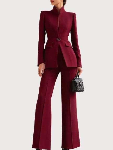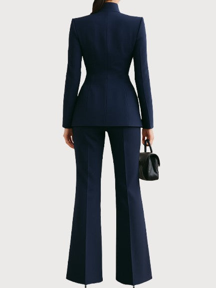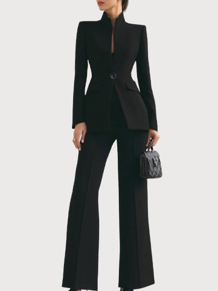 Designed for the woman who values sophistication without compromise, the Adrielle Suit blends timeless tailoring with soft, breathable fabric that moves with you throughout the day. Every detail — from the sculpted waistline to the sleek flare of the trousers — is made to make you feel composed, confident, and irresistibly elegant.