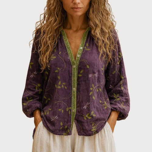 Ambre™ | Vintage Leaf Print Blouse